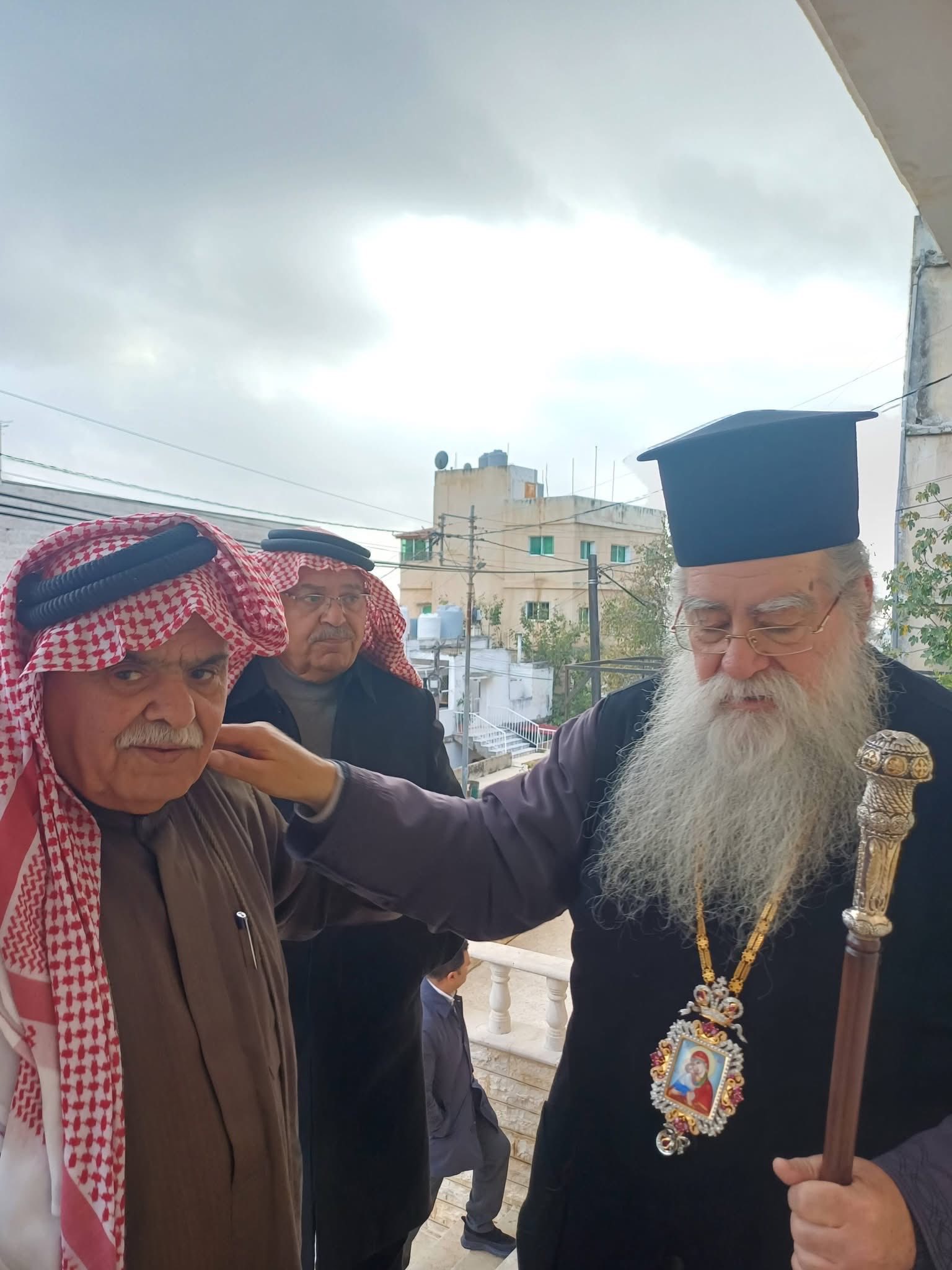 المطران فندتكتوس يزور منزل الشيخ طعان ابوهزيم بالسلط معزيأ بوفاة نجله الصحفي عبدالرزاق ابو هزيم