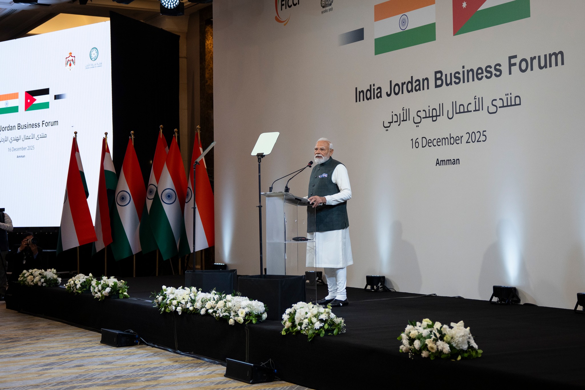 البلقاء اليوم - جلالة الملك عبدالله الثاني ورئيس الوزراء الهندي ناريندرا مودي يحضران الجلسة الافتتاحية لمنتدى الأعمال الهندي الأردني في عمان، والذي يهدف لتعزيز الشراكات الاقتصادية بين البلدين. حيث أكد جلالته، خلال كلمة ألقاها بحضور سمو الأمير الحسين بن عبدالله الثاني ولي العهد، حرص الأردن على توسيع التعاون الاقتصادي والاستثماري مع الهند وزيادة التبادل التجاري، لافتا إلى أهمية الاستفادة من الموقع الجغرافي الاستراتيجي للأردن لتعزيز إقامة مراكز لوجستية وتصنيعية متكاملة
