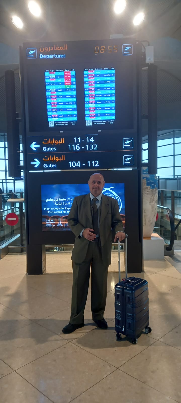 البلقاء اليوم - غادر ارض الوطن اليوم رئيس جمعية البلقاء للفنون التشكيلية الفنان التشكيلي نذير العوامله إلى دولة قطر وسيقوم خلال فترة اقامته من ١٧ / ١٢ / ٢٠٢٥ وحتى ٥ / ١ / ٢٠٢٥ باللقاء مع الاستاذ خالد السليطي مديرعام كتارا للثقافه والفنون و مع رئيس الجمعية القطريه للفنون التشكيليه
