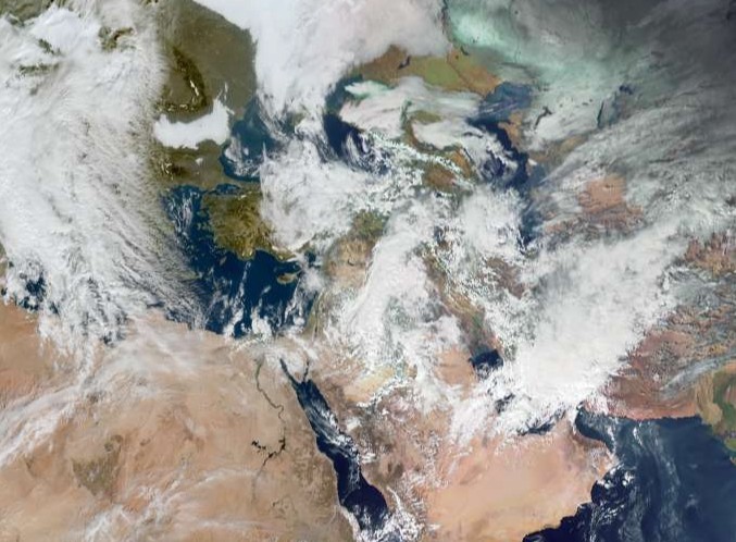 صور الأقمار الصناعية حالياً تظهر تأثر المناطق الشرقية من المملكة برياح نشطة مثيرة للغبار
