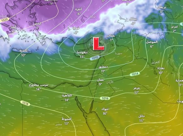 ️ يبدأ تأثير المُنخفض على سوريا ولبنان اعتباراً من هذه الليلة ويوم الأربعاء ( قبل رأس السنة)