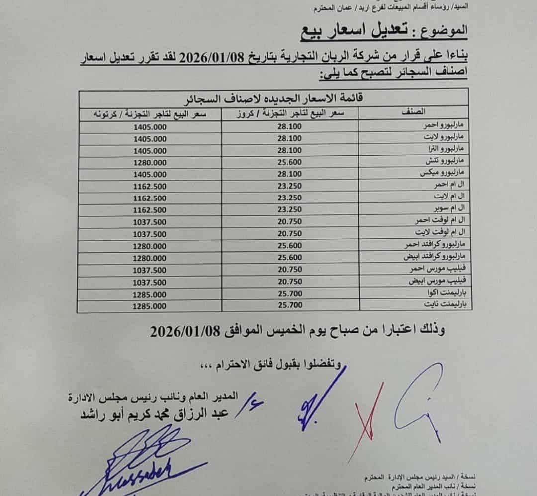 البلقاء اليوم - أسعار جديده لاصناف أخرى من الدخان