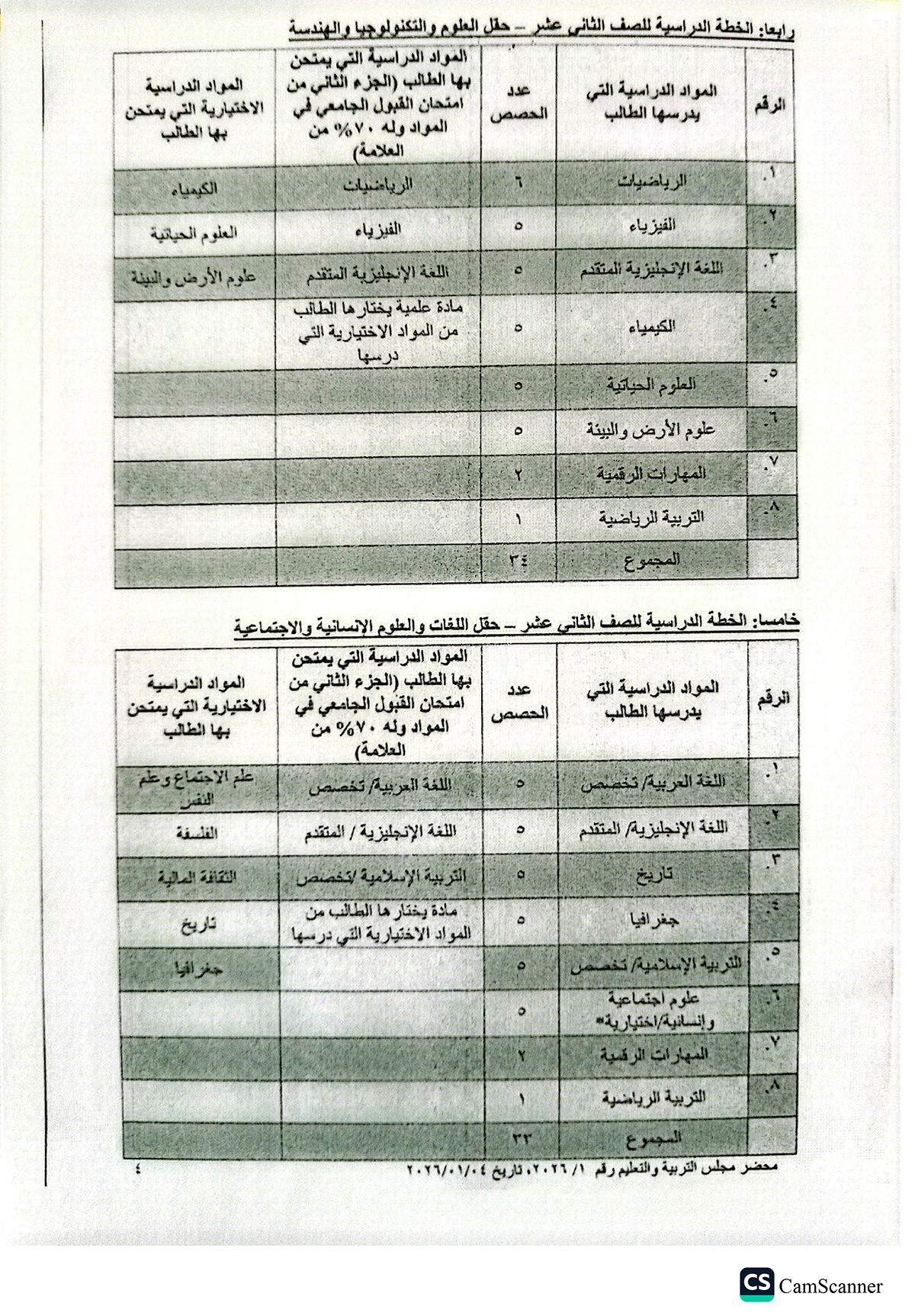 رسميا .. وزارة التربية والتعليم تعلن عن المسارات الأكاديمية الجديدة لجيلي 2009/ 2010