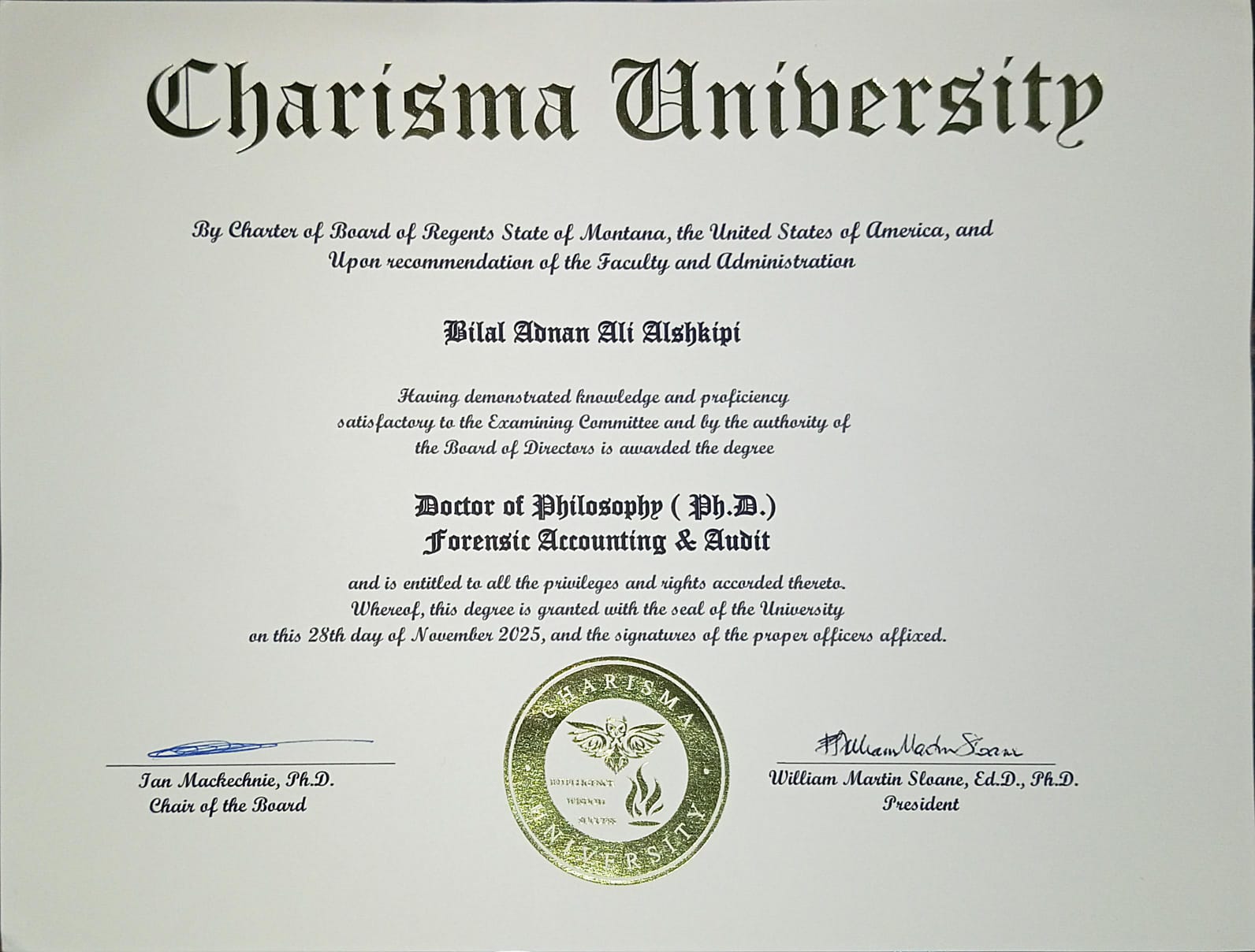 على درجة #الدكتوراه في المحاسبه الجنائيه والتدقيق من