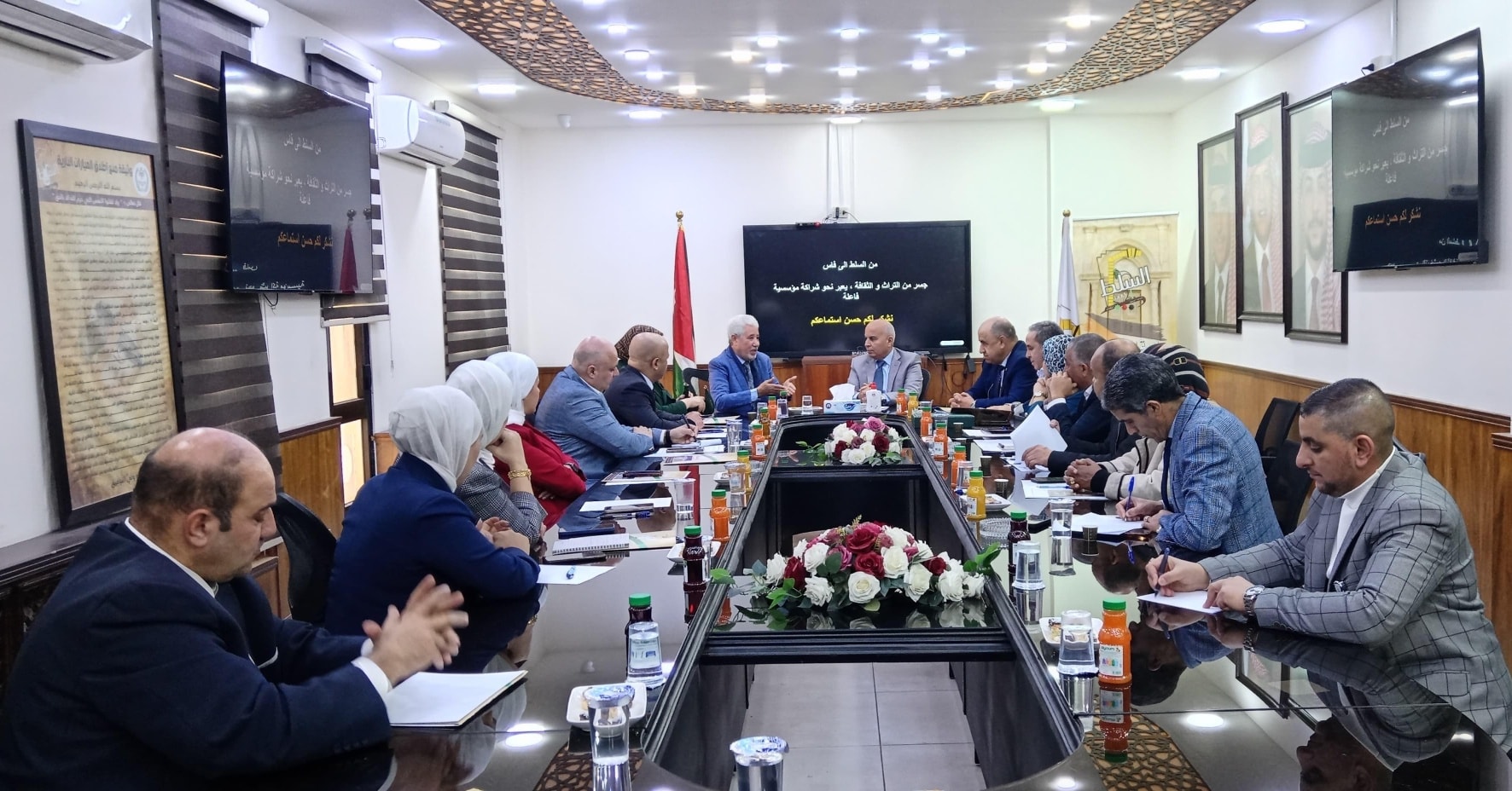 واستمع الوفد لعرض تقديمي لابرز نقاط وأماكن الجذب السياحي والثقافي و الإنجازات والمشاريع التي نفذت في مدينة السلط