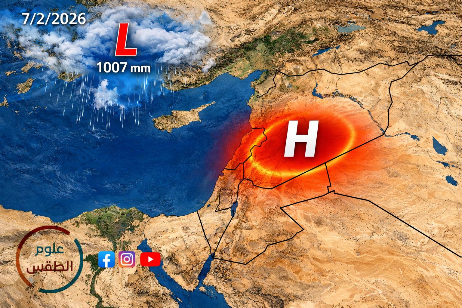 بينما ترتوي سوريا ولبنان بالأمطار ️، يفرض المرتفع المداري سيطرته على أجواء الأردن وفلسطين طوال هذا الأسبوع ️