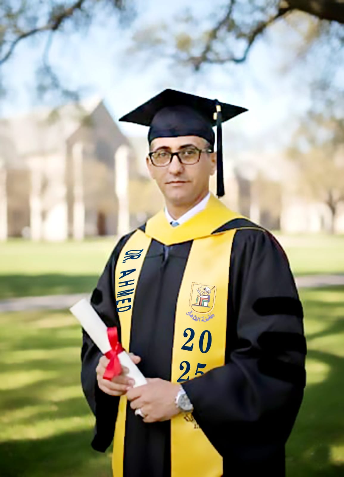 بأحر التهاني و التبريكات بمناسبة حصولة على درجة الدكتوراه في الفلسفة في التربية / جامعة القاهرة