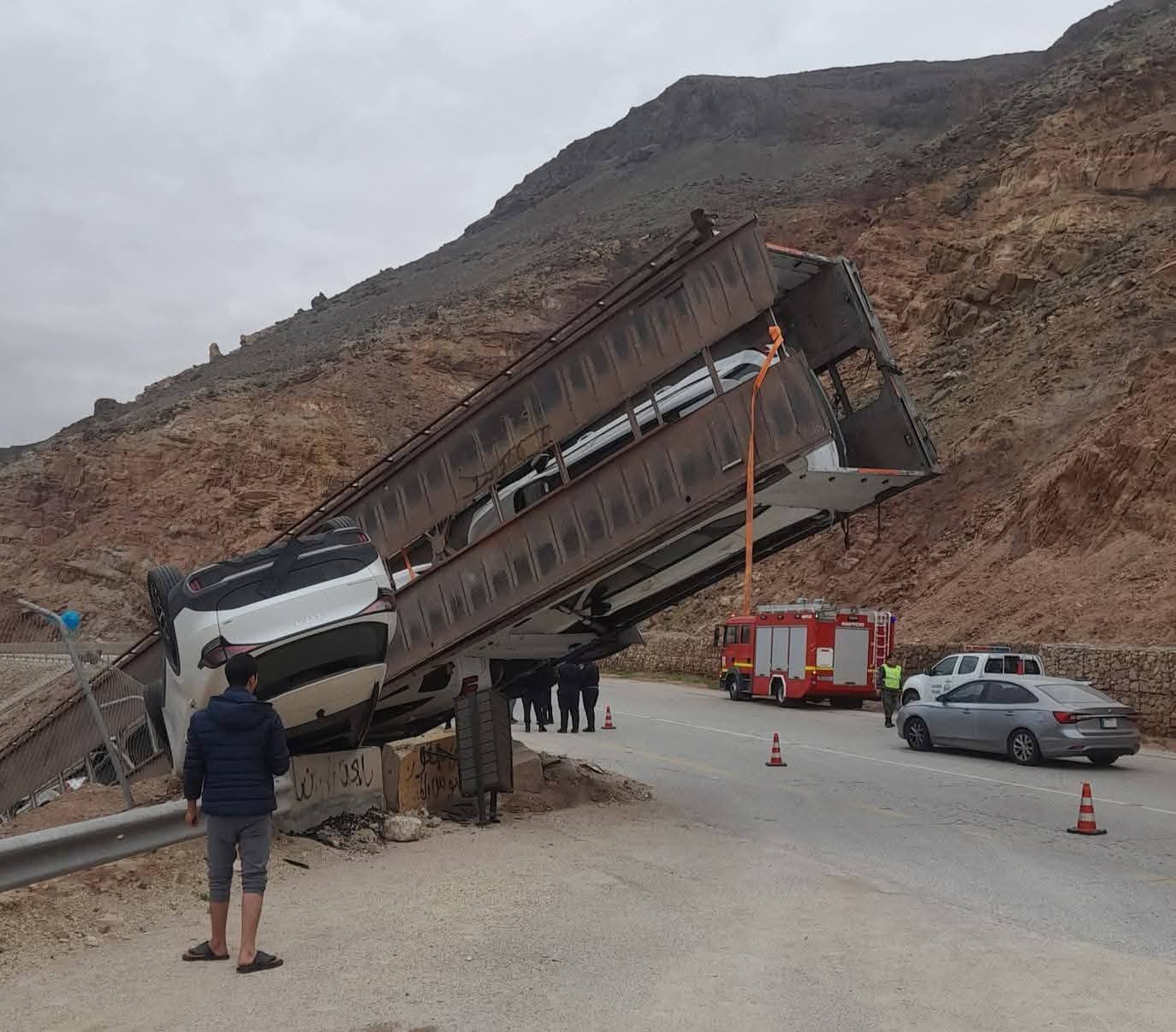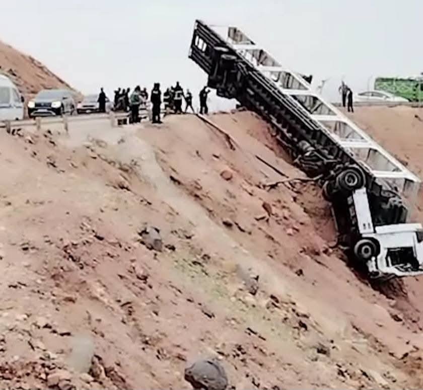 البلقاء اليوم - انقلاب شاحنة محملة بالسيارات قرب منطقة المياه الساخنة على طريق البحر الميت، حيث تحركت كوادر الدفاع المدني والأجهزة المختصة بسرعة إلى موقع الحادث، وعملت على تأمين المكان والتعامل مع الحادث وفق الإجراءات اللازمة، لضمان السلامة العامة وتنظيم حركة السير في المنطقة.