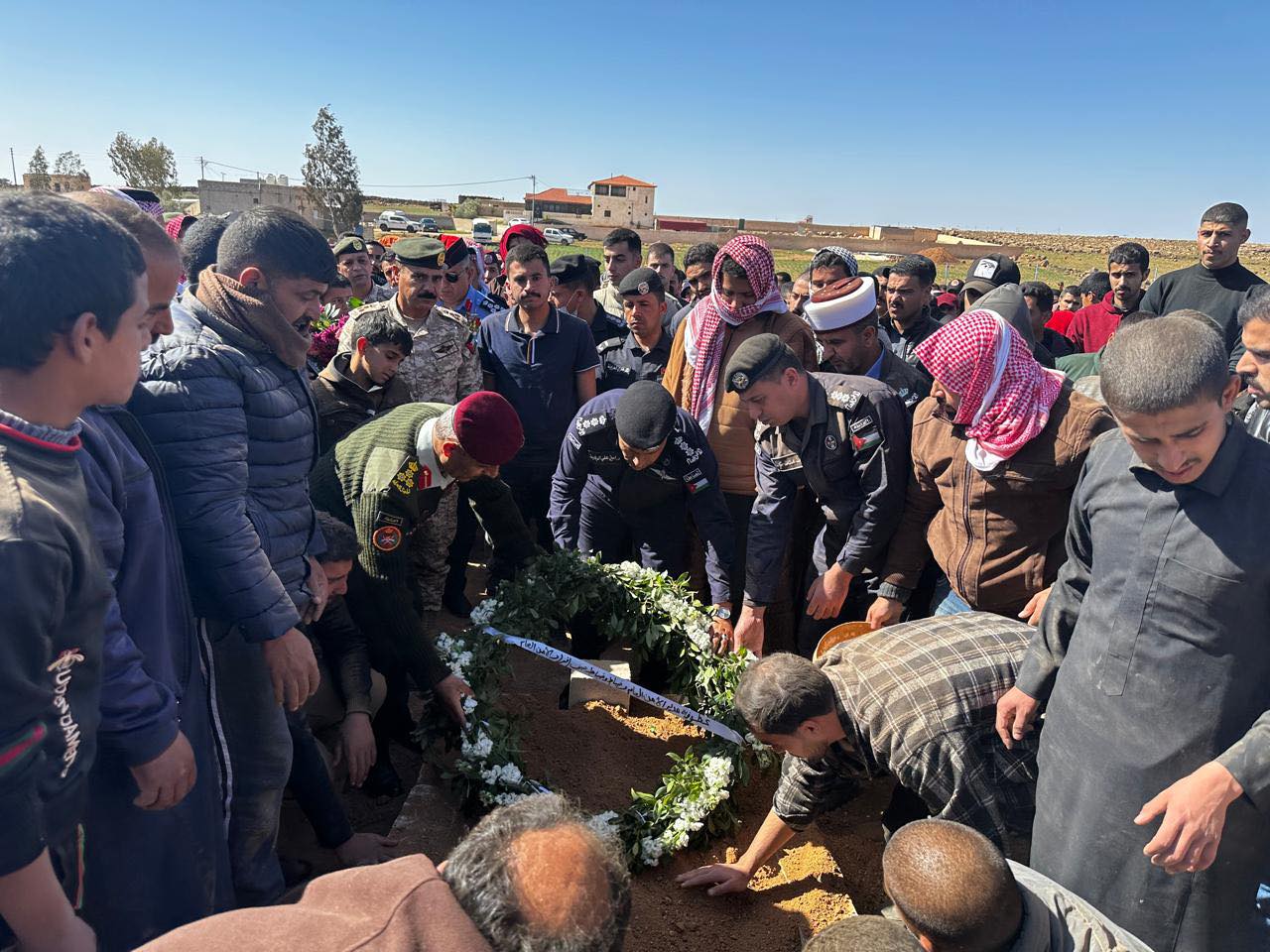 وشارك بتشييع الجثمان آمر اكاديمية الشرطة الملكية العميد الدكتور يوسف البداينه ونائب مدير شرطـة الباديـة الشماليـة العقيد ابراهيم الحجايا وعدد من ضباط وضباط صف وأفراد مدير الأمن العام من مختلف التشكيلات.