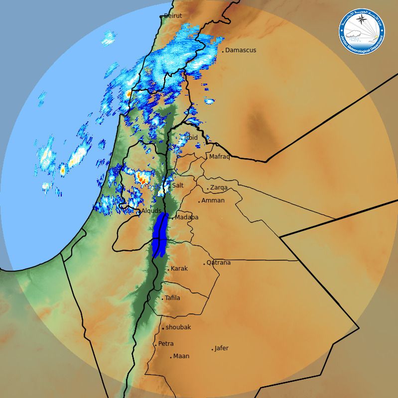الأرصاد الجوية: تشير صور الرادار الان الى هطول زخات من المطر في أجزاء من محافظة #اربد و#البلقاء.