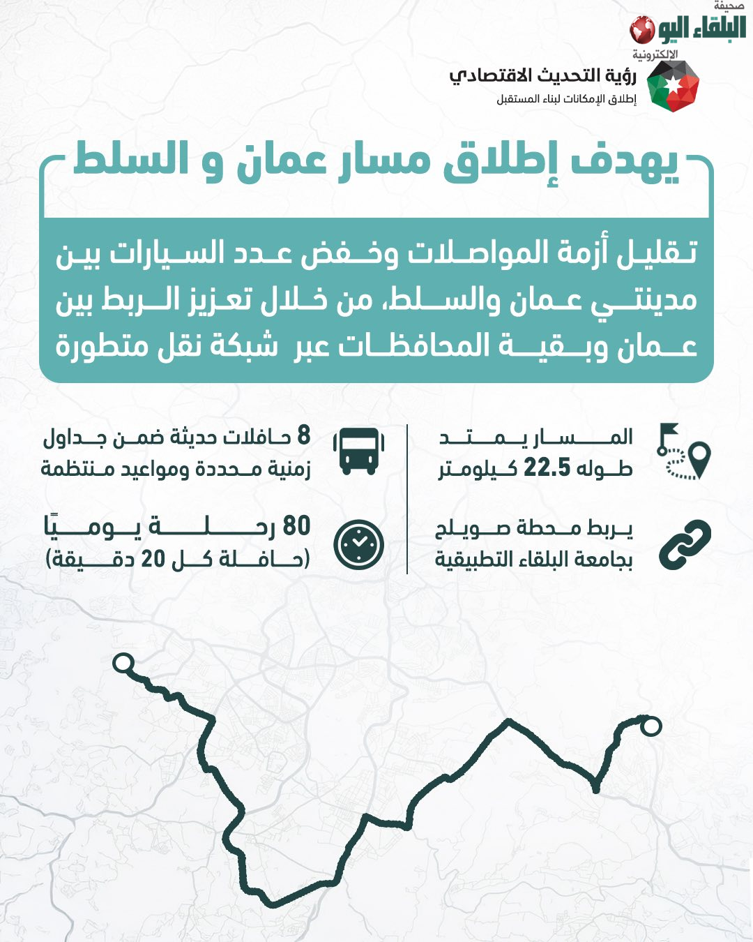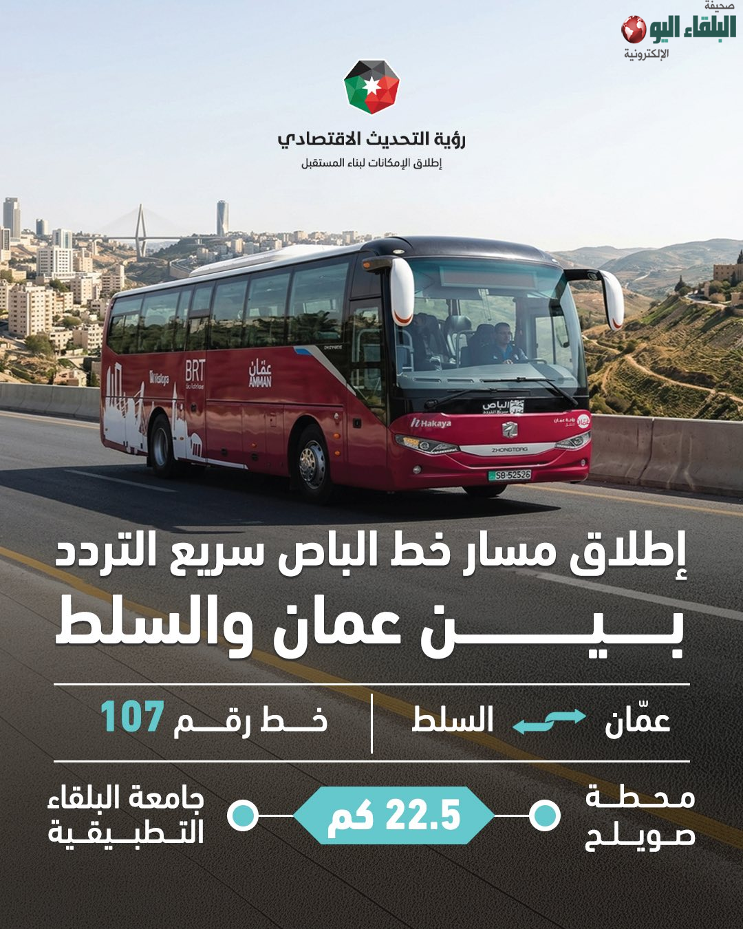 البلقاء اليوم - خط الباص سريع التردد بين عمان والسلط – تعرف على جميع المواقف