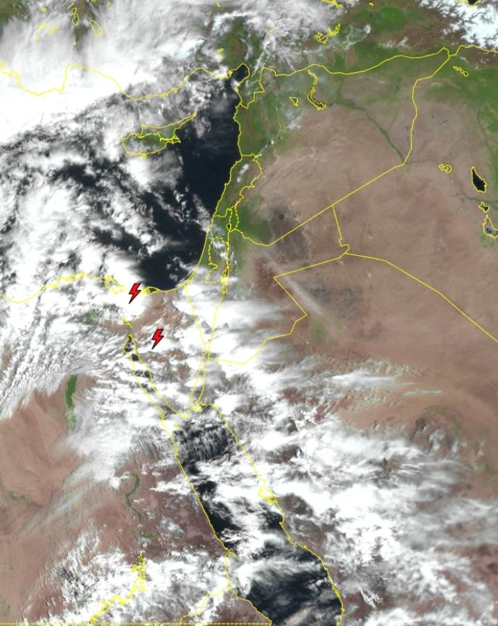 البلقاء اليوم - - تظهر صور الأقمار الاصطناعية بداية تشكل غيوم ركاميه رعدية فوق مناطق واسعه من سيناء وشرق #مصر وجنوب #فلسطين