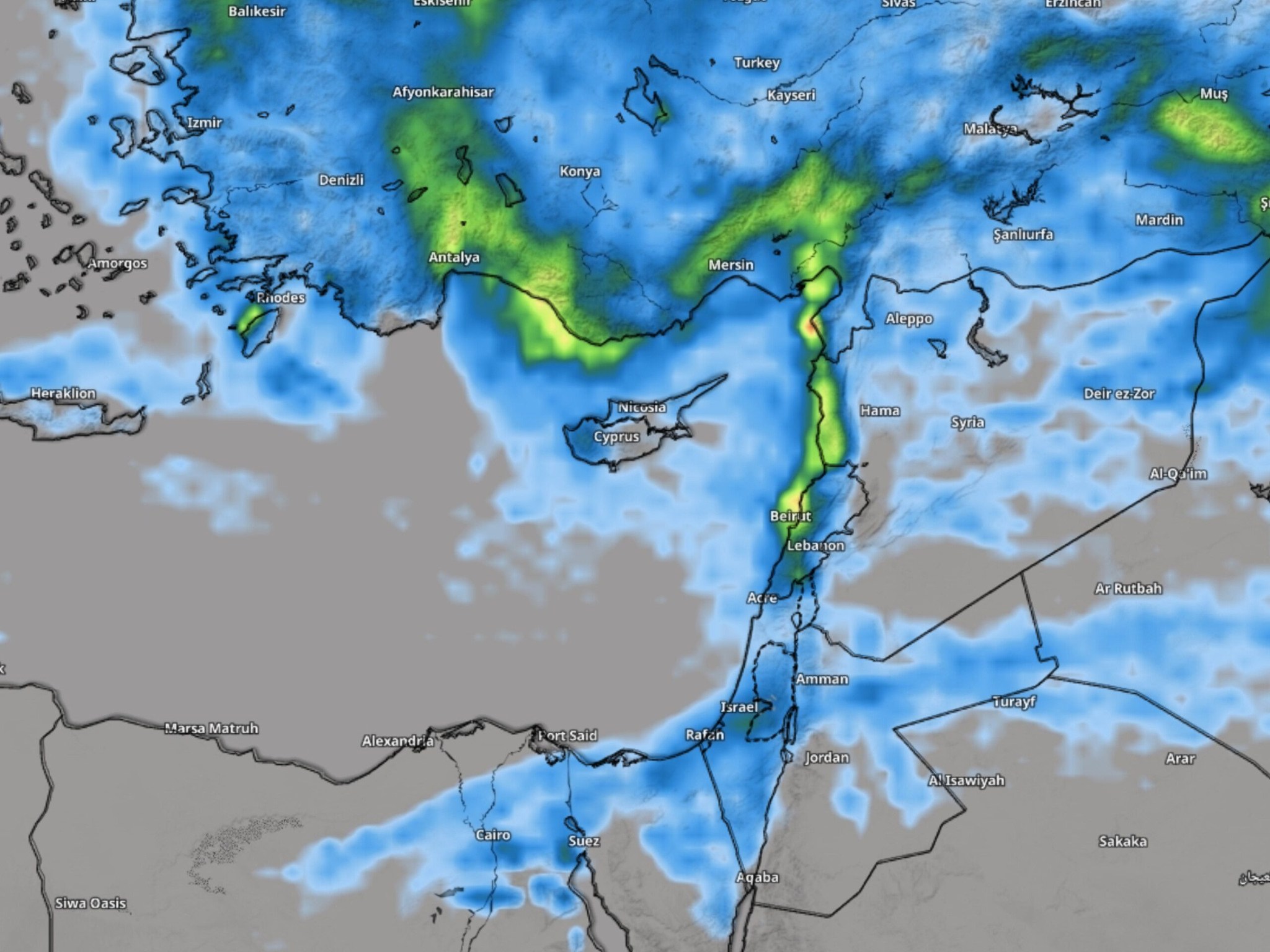 تكون الأمطار غزيرة على سواحل سوريا ولبنان، ومتفاوتة الشدة (ما بين الخفيفة والمتوسطة) في بقية المناطق.