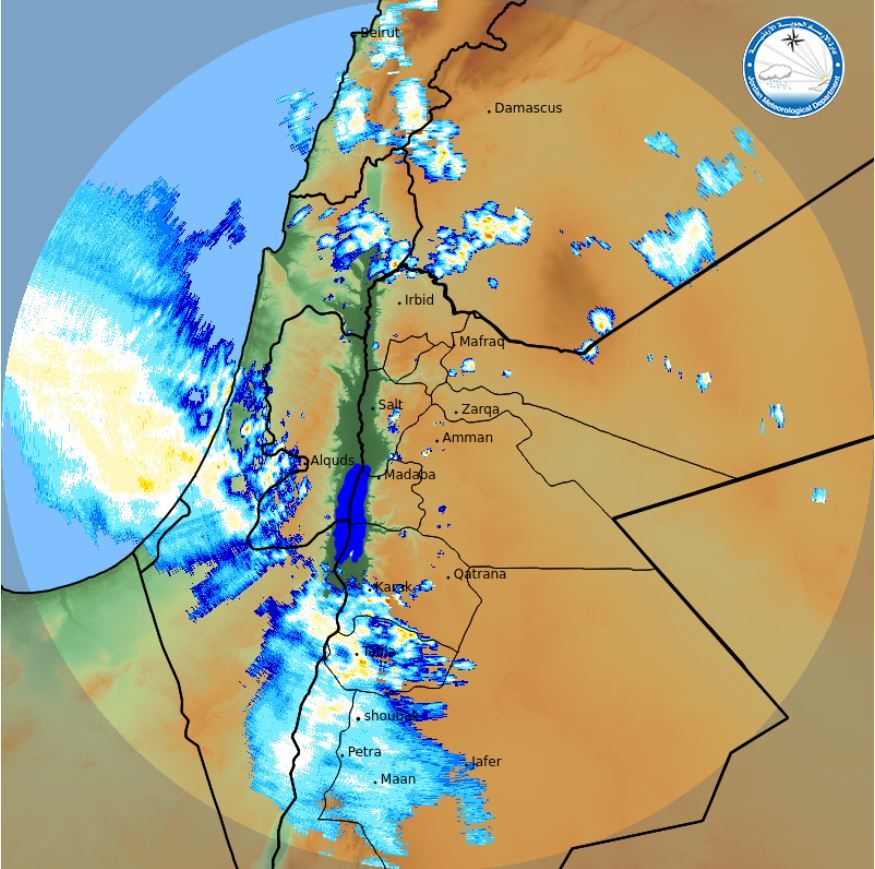 البلقاء اليوم - تشير آخر صور الرادار لدى إدارة الأرصاد الجوية إلى هطولات مطرية خفيفة إلى متوسطة الشدة في مناطق متفرقة من المملكة تتركز الآن في المحافظات الجنوبية، يتوقع في ساعات المساء والليل ان تشتد الهطولات في بعض المناطق ويصحبها الرعد.