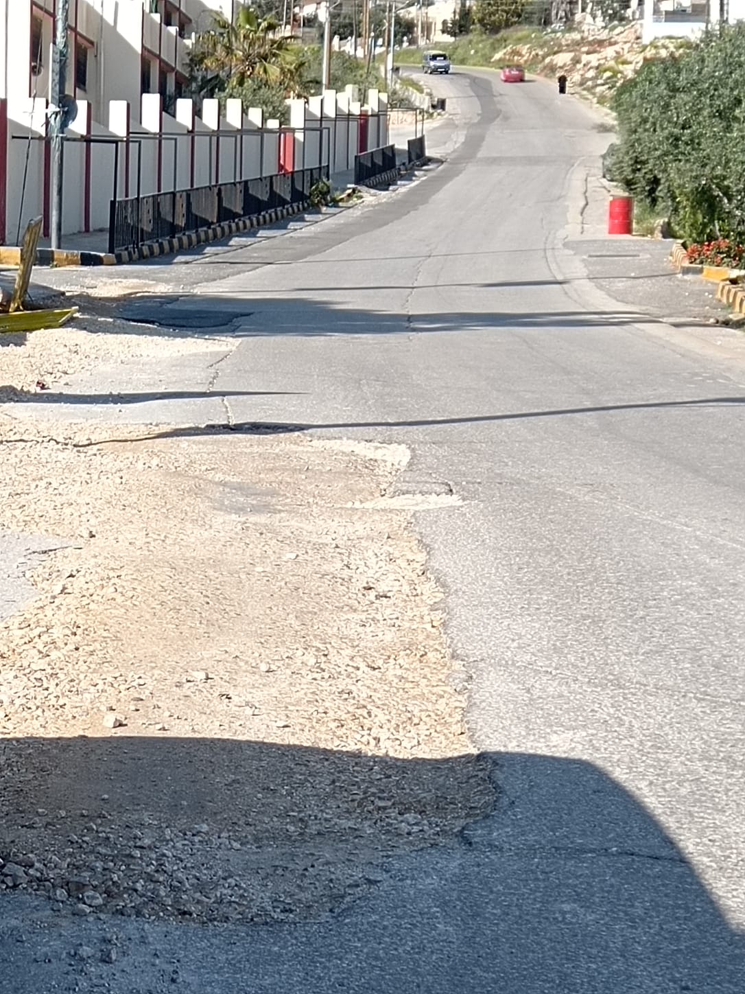 ويؤكد مواطنون ان الطريق الذي وصفوه بأنه مدخل لا يليق بالبلدة يعتبر غير آمن نتيجة للتشققات المنتشرة في جسم الطريق وحفريات سلطة المياه وما تتسبب به هذه الاشكالات من اضرار متكررة تلحق بمركبات المواطنين خاصة وان الواقع الحالي للطريق لم يعد مجرد اهتراء طبيعي فقط بل تعداه إلى أعمال حفر خدمية غير مكتملة بعد قيام احد المتعهدين بأعمال حفر لخطوط المياه طالت كثيرا وارهقت المواطنين ومركباتهم وزادت من سوء واقع الطريق وما تسبب في من ازعاج للمجاورين من مواطنين ومحال تجارية مؤكدين في الوقت ذاته ان مدخل البلدة لا يليق بها.