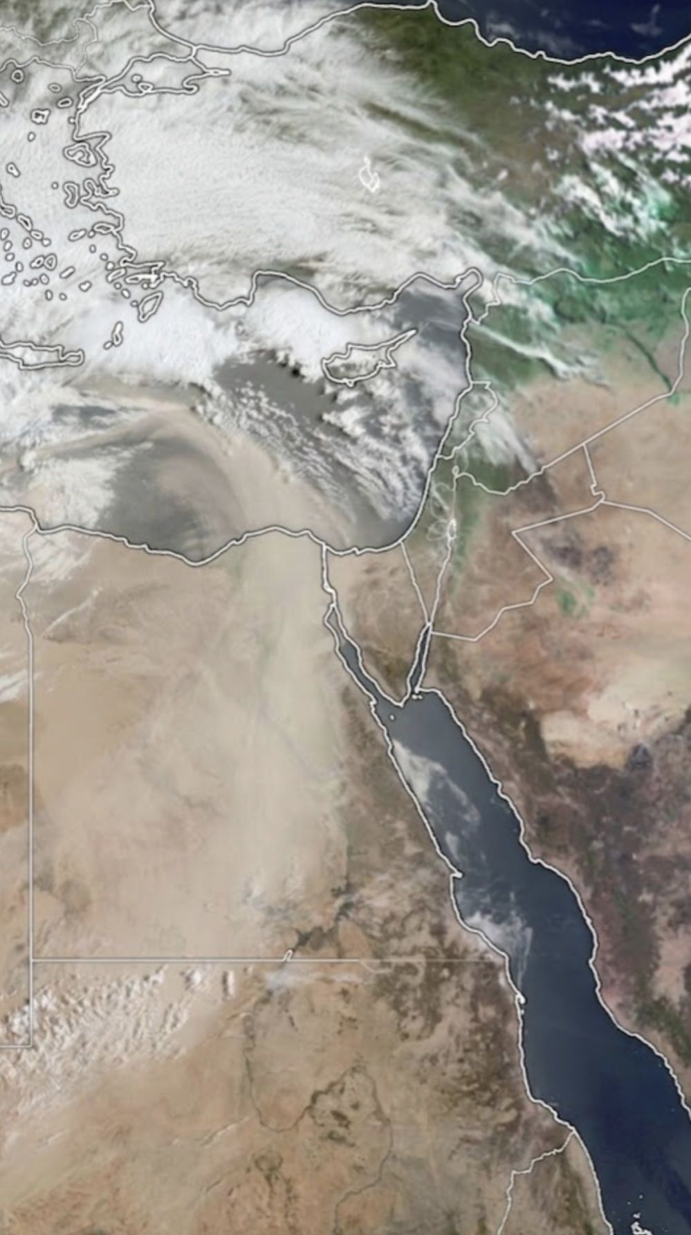 عاصفه رمليه قوية تضرب الأراضي المصرية ، وتحرك الغبار الكثيف بأتجاه بلاد الشام