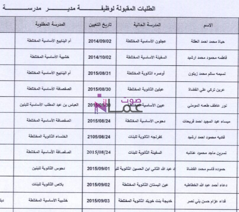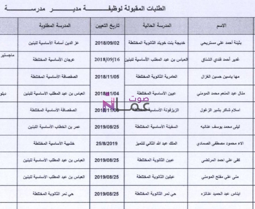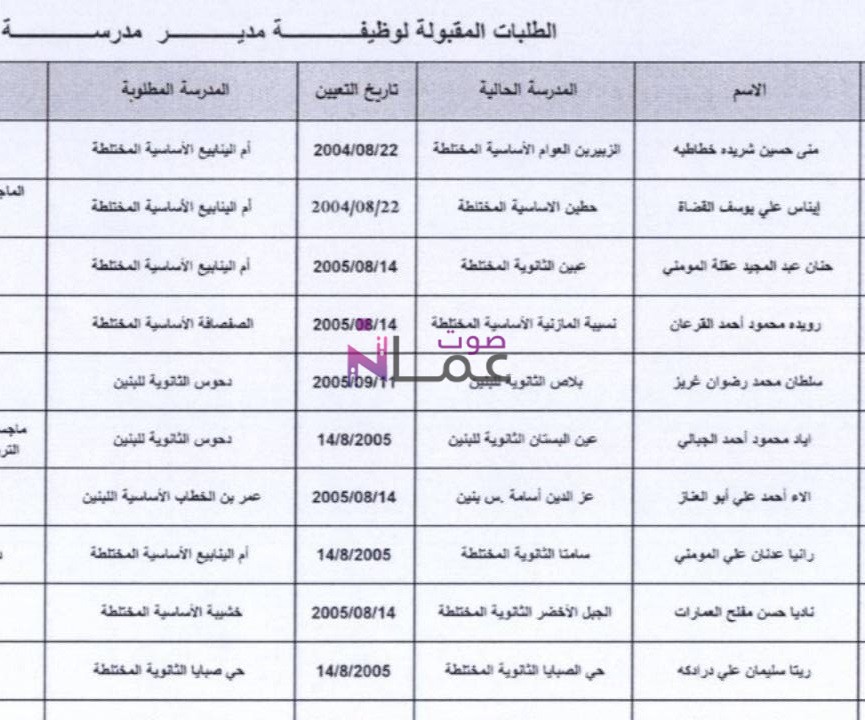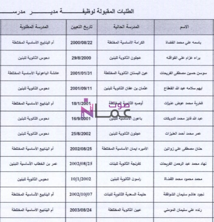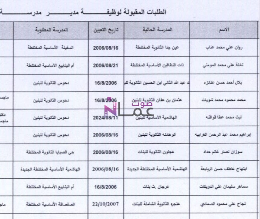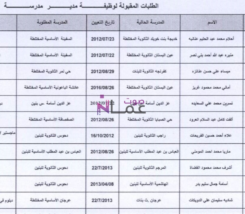 البلقاء اليوم - نشرت وزارة التربية والتعليم كشفا باسماء المرشحين لاشغال وظيفة مدير مدرسة، وذلك ضمن اجراءات الترفيع والتعيين المعتمدة في الوزارة.