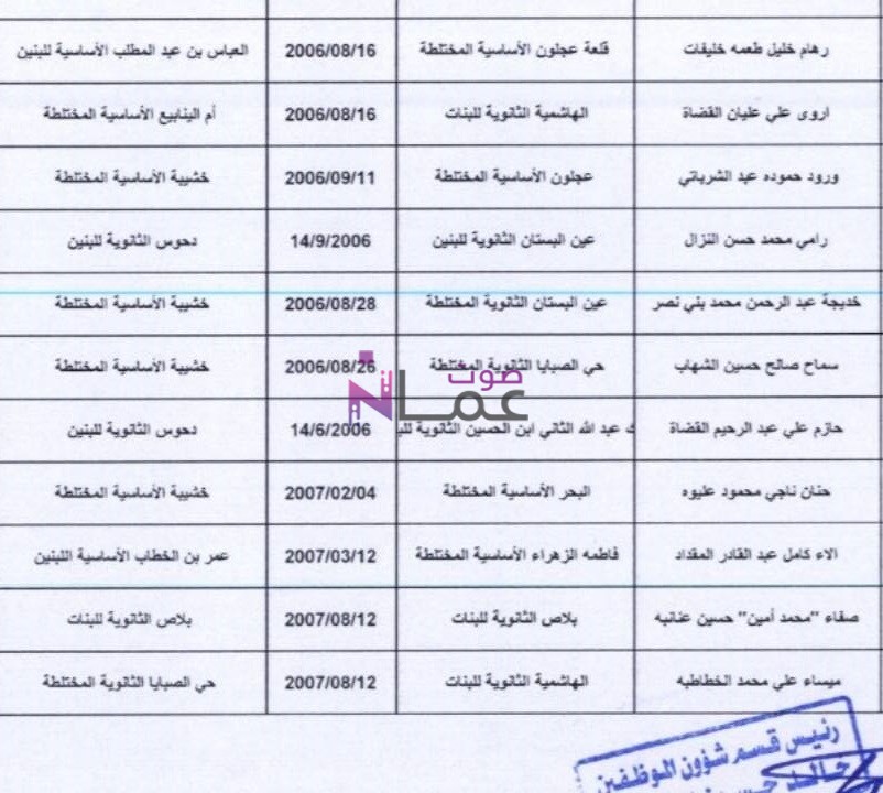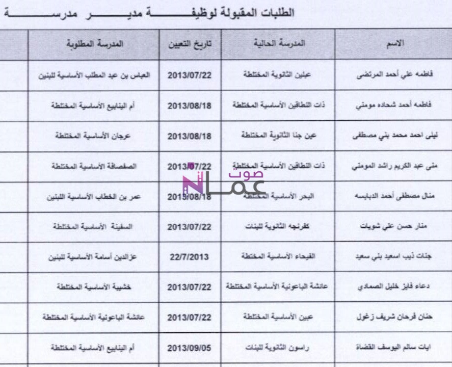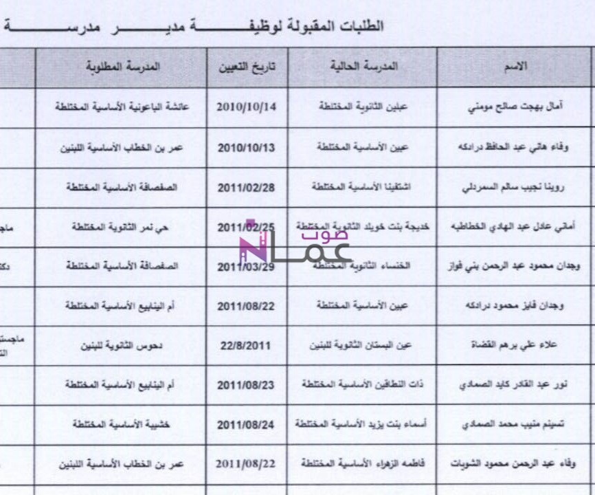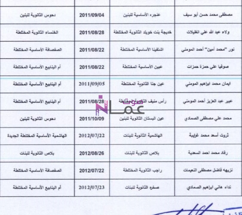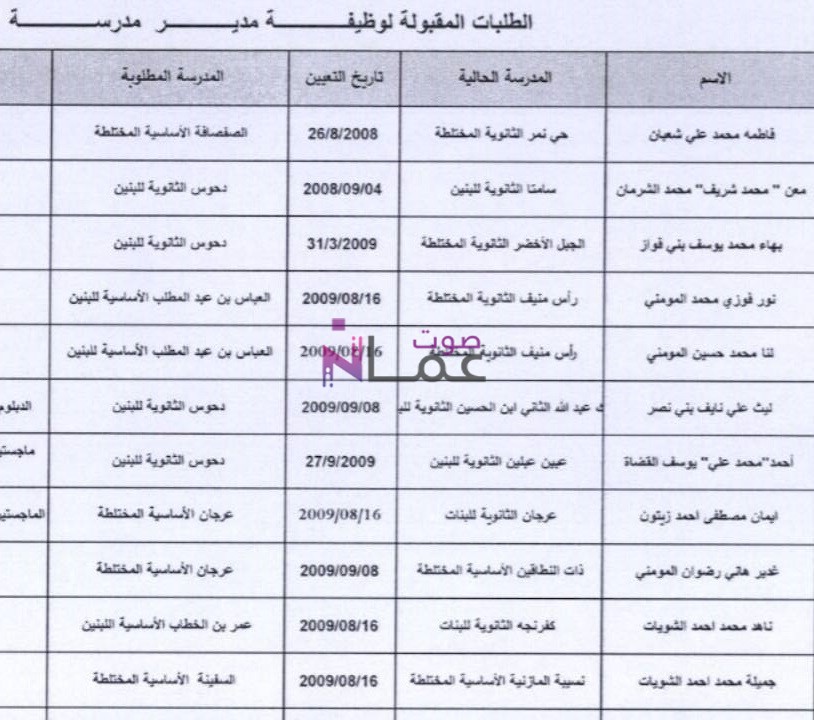 البلقاء اليوم - نشرت وزارة التربية والتعليم كشفا باسماء المرشحين لاشغال وظيفة مدير مدرسة، وذلك ضمن اجراءات الترفيع والتعيين المعتمدة في الوزارة.