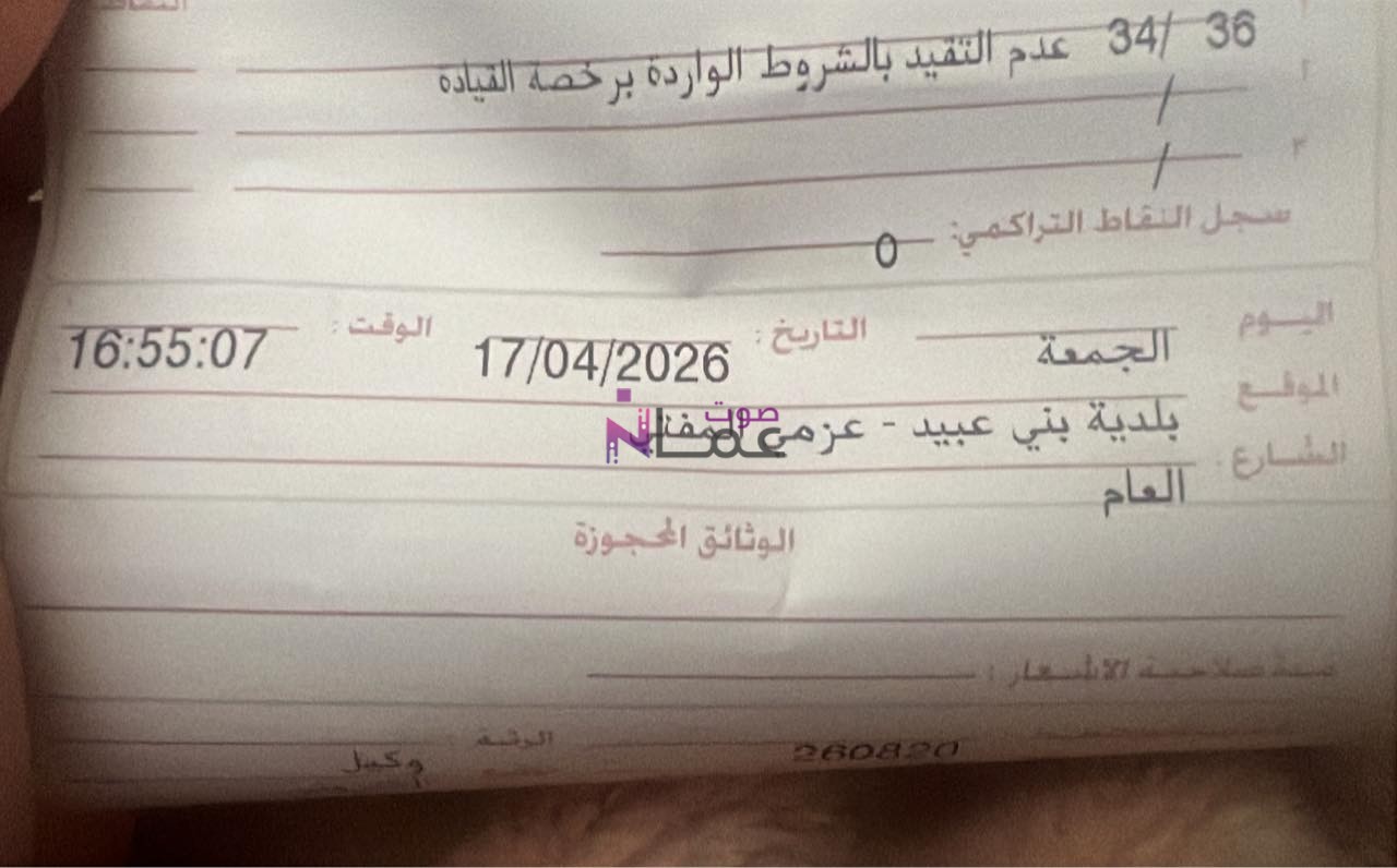 واوضح السائق ان المشكلة لا تتعلق بقدراته البصرية الفعلية، بل بعدم تحديث بيانات الرخصة بعد اجراء العملية الطبية، الامر الذي ادى الى تسجيل المخالفة بحقه.