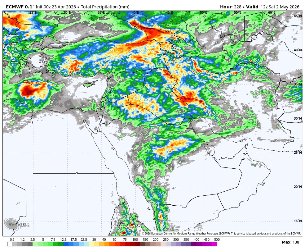 البلقاء اليوم - نشاط مطري من اصل مداري متصاعد يبدأ وسط وجنوب غرب الجزيرة العربية خلال الايام القليلة المقبلة وينتقل تدريجياً صوب الشمال باتجاه بلاد الشام ومصر والعراق مع اقتراب نهاية الشهر مما سيؤدي الى هطول الامطار الرعدية الغزيرة في العديد من المناطق بمشيئة الله تعالى.